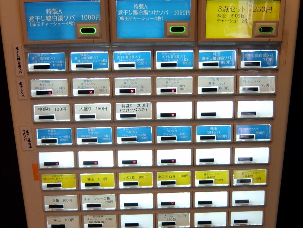 訪問時「煮干しソバ」が売切表示。ってことで、「煮干し鶏白湯ソバ」をチョイス。