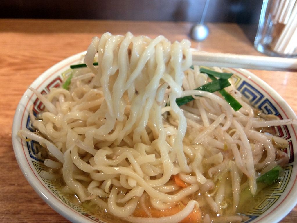 麺は中太で、しっかりと縮れのついたタイプ。 タンメンのイメージ通りの麺で、たっぷりの野菜とかに味スープにも負けない存在感があります。