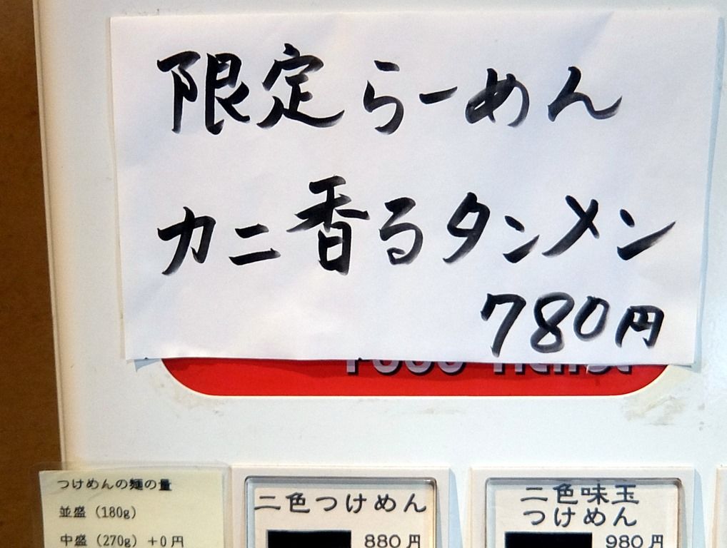 限定は、「カニ香るタンメン」780円。 6月24日から1週間位の予定だそうです。