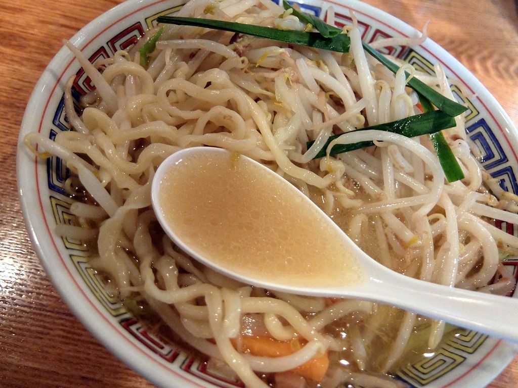 スープは、さらりとした清湯の塩味と醤油味の中間のような味わい。