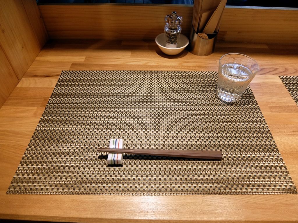 BGMは、インストゥルメンタルのヒーリングミュージック。 卓上にはあらかじめランチョンマットが敷かれていて、箸置きに洗い箸がセッティングされます。
