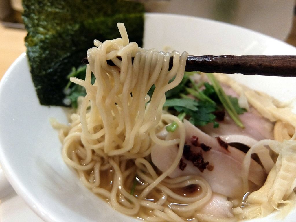 あっさりとした清湯スープにも合うマルチな麺で、美味しい!