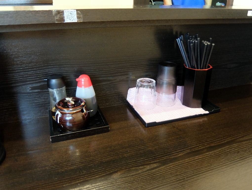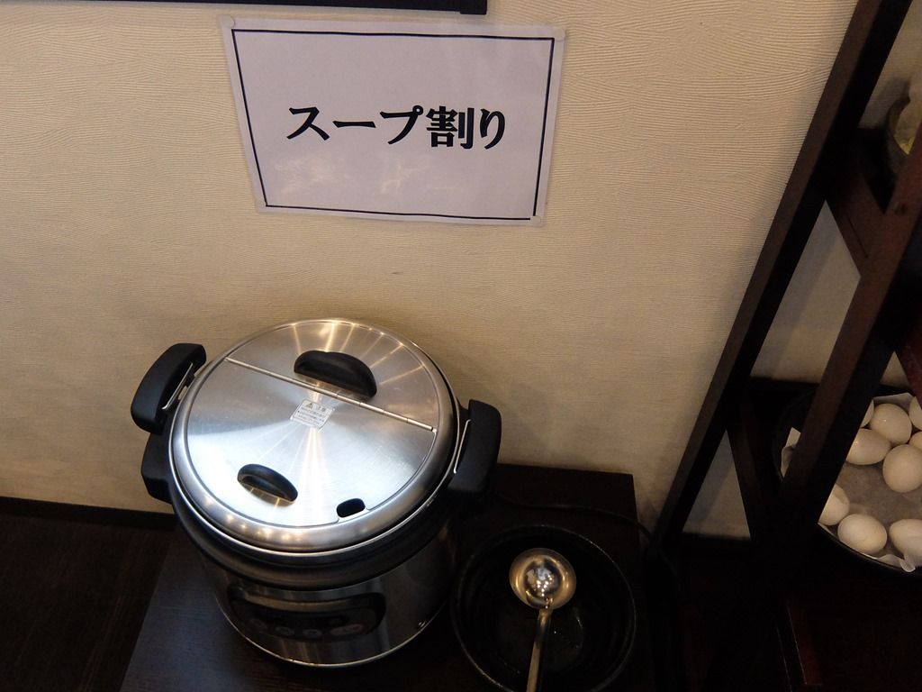無料トッピングコーナの横には、スープ割りの保温ジャーも設置。