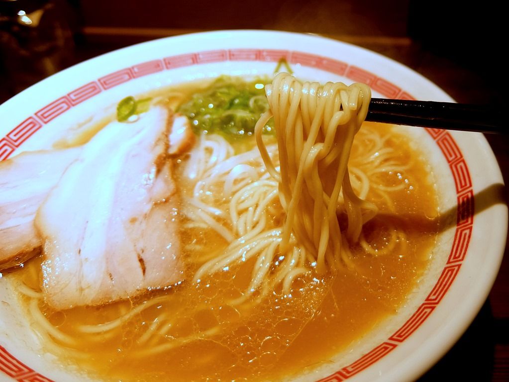 やや加水低めで、さっくりとした食感が、旨みたっぷりの豚骨スープに良く合っています。