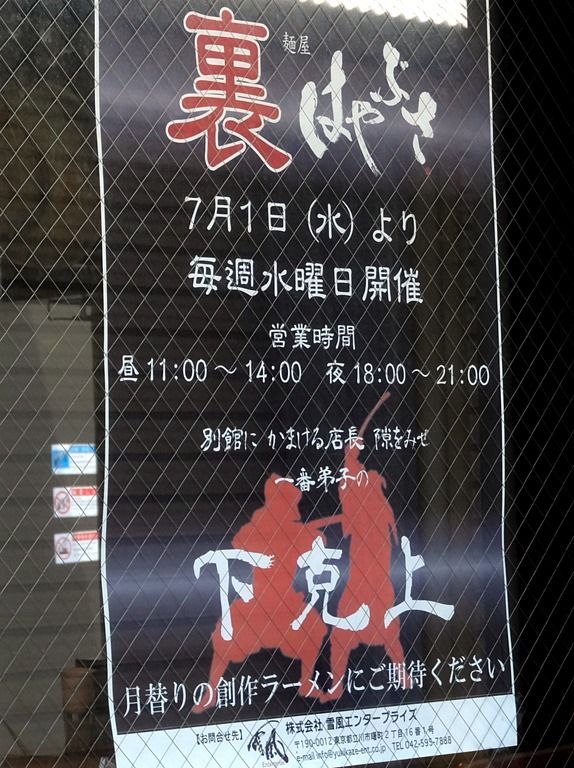 ちなみに、7月1日より、「麺屋はやぶさ」の定休日水曜日に、「裏 はやぶさ」スタート。