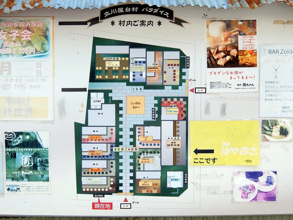 店の場所は、「麺屋はやぶさ」の向かって右隣。「麺屋はやぶさ」が立川屋台村のA-4・A-5区画で、「Bar T-38 Talon」がA-6なので、まんまお隣。