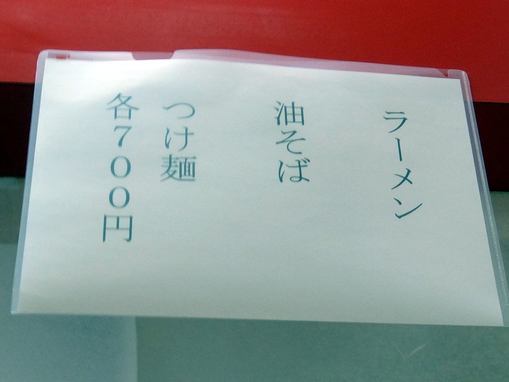 麺は、ラーメン・油そば・つけ麺 各700円。