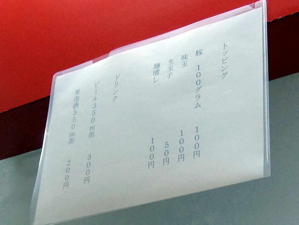 無料トッピングはどこにも掲示がありませんが、ニンニク・玉ねぎの2種類。「ヤサイマシ」話。コールのタイミングですが、提供直前に、「にんにく入れますか?玉ねぎはどうしますか?」と聞かれます。「玉ねぎ」のみで。