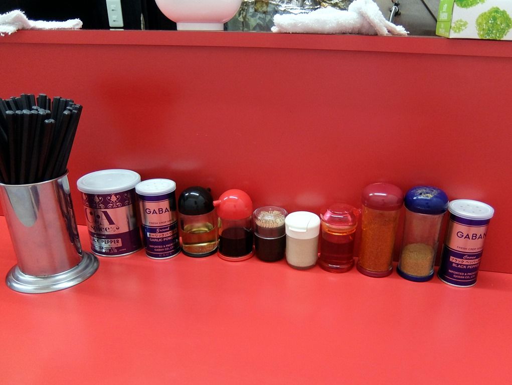 卓上に装備された豊富な調味料が、カスタマイズの楽しみを広げてくれます。