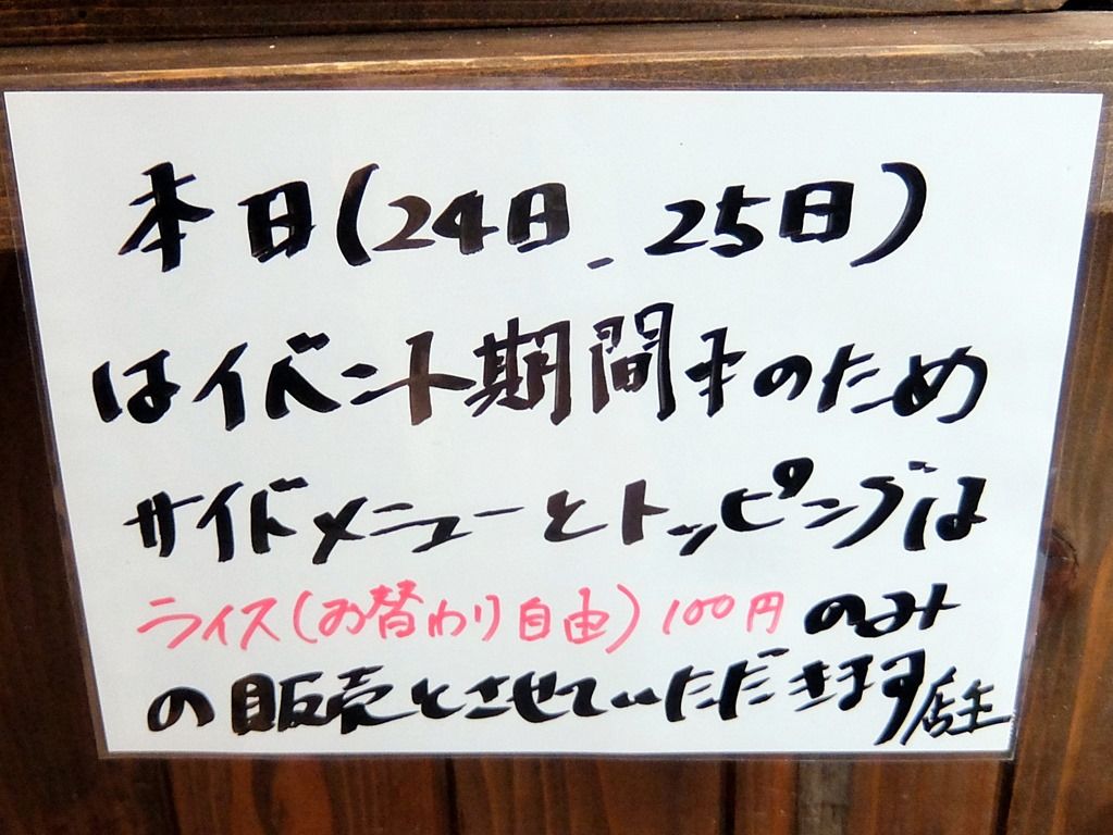 前述の通り、7/24(金)と7/25(土)は、麺メニュー4品どれでも一杯500円