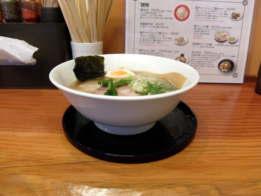 主なメニューは、鶏そば750円、煮干しラーメン750円、煮干しつけ麺800円、まぜそば780円、