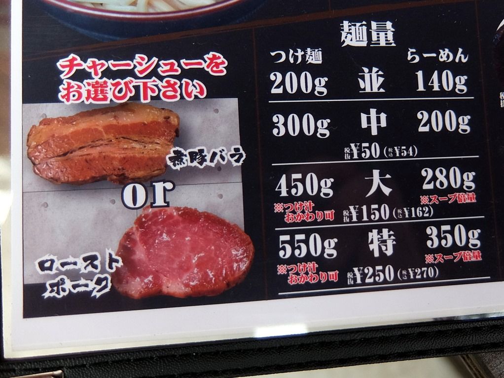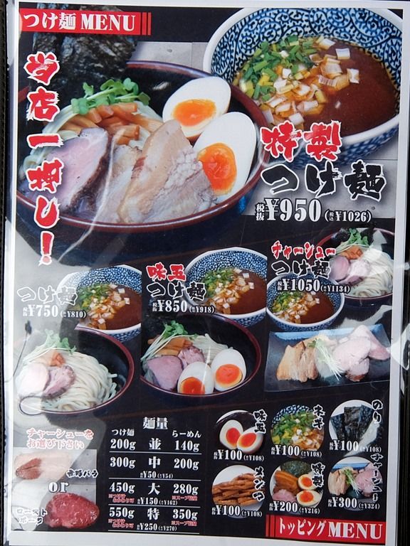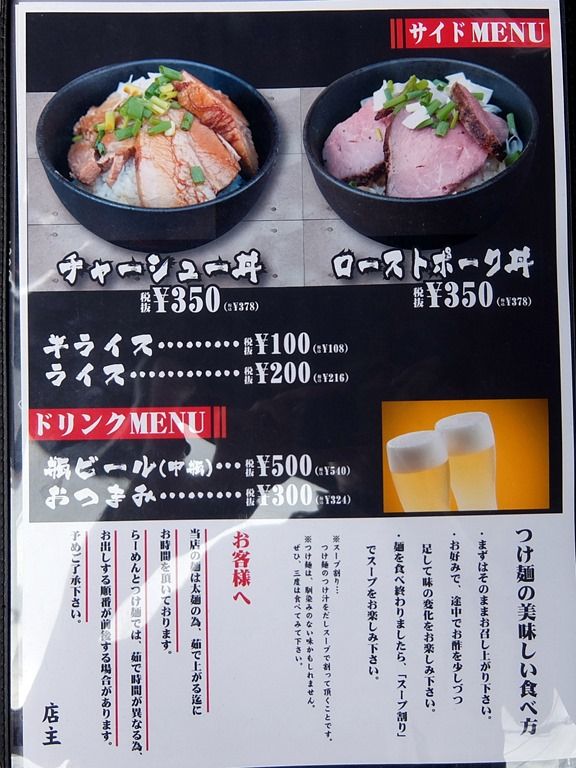 メニュー1ページ目はつけ麺で、つけ麺が推し麺というシフト。 主なメニューは、つけ麺810円、