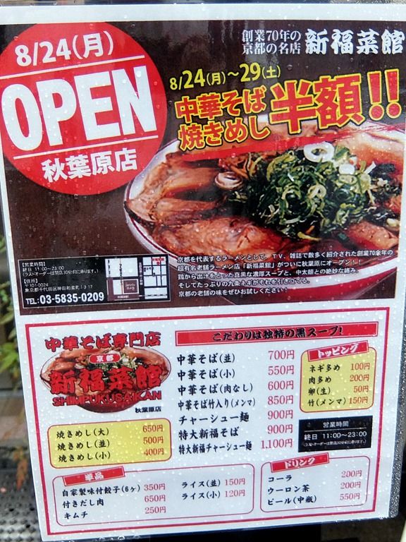 オープン日の8月24日から29日まで、中華そば・焼きめしを半額にて提供!