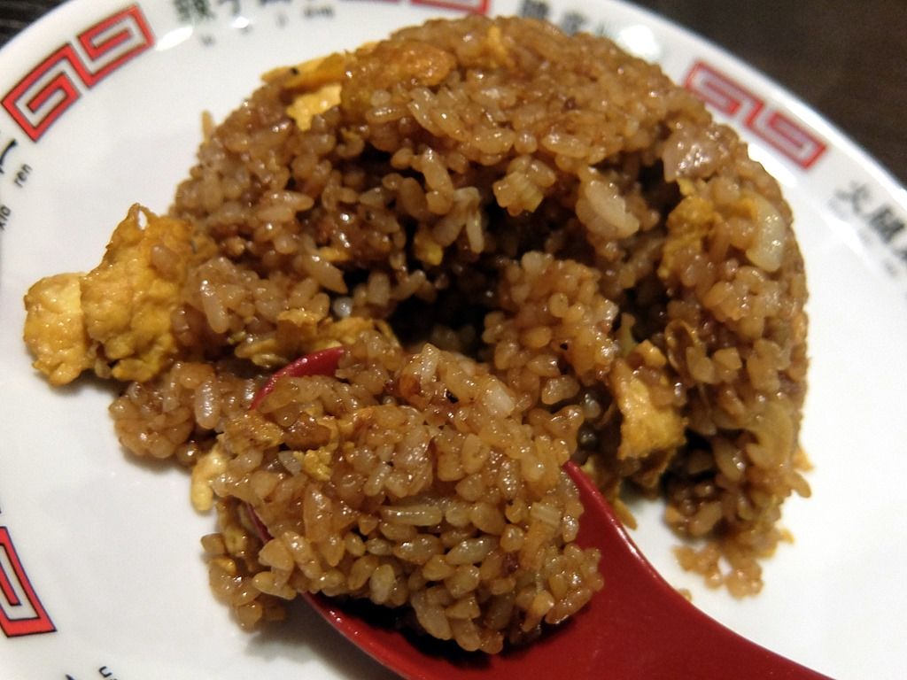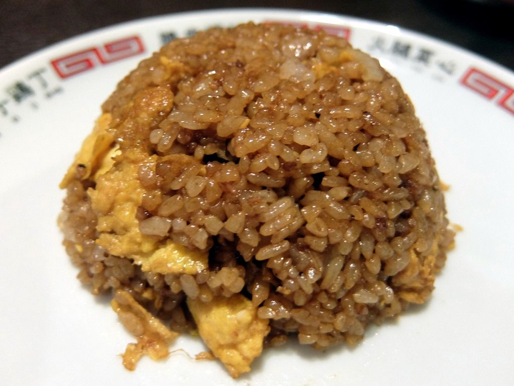 具は玉子のみ。 醤油で炒めた真っ黒な色味が特徴。仕上がりはパラっとと言うよりベタッと(^_^;)