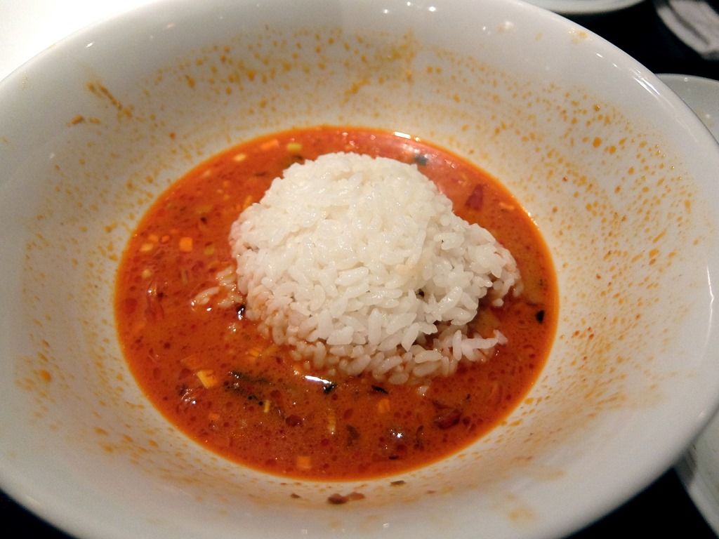 〆は、残ったスープにライスを投入して、担々雑炊に! これたまりません!最高w