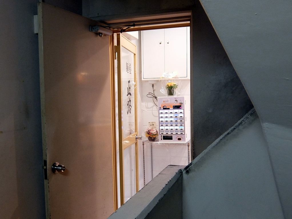 さらに階段を登って行くと、「正路」の入り口があります。 入店すると、まず券売機で食券購入です。