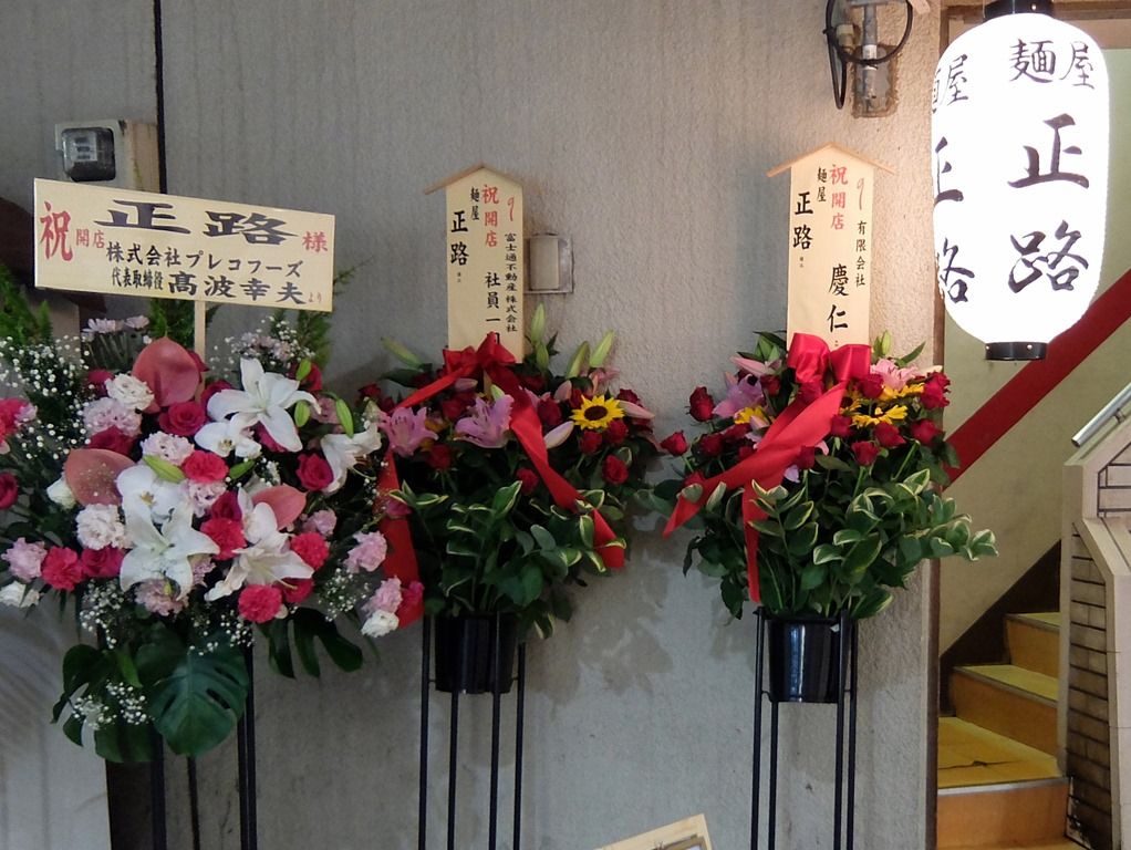 入口横に、開店祝花。