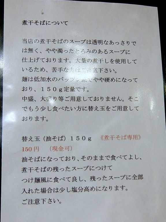 煮干そば用(150g)替え玉(油そば)150円、