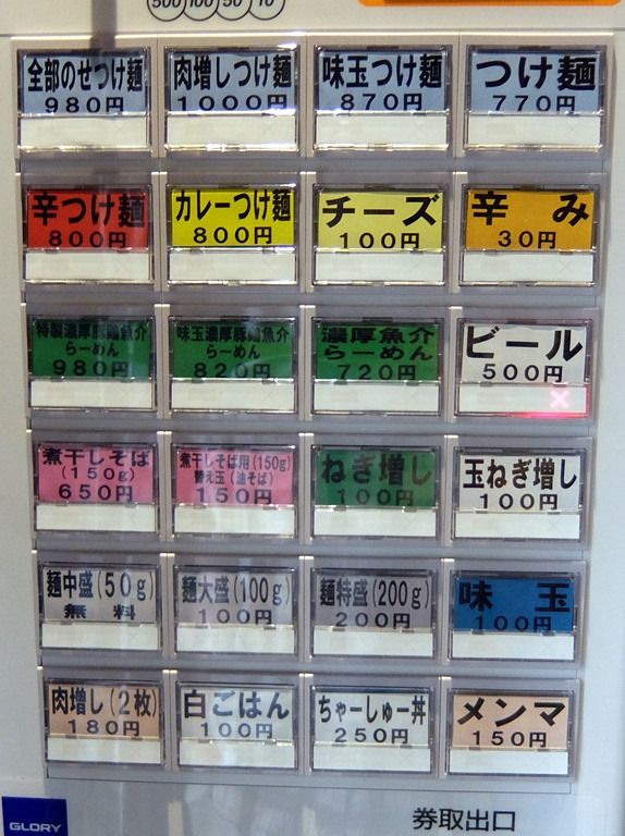 入店すると、まず券売機で食券購入です。 主なメニューは、