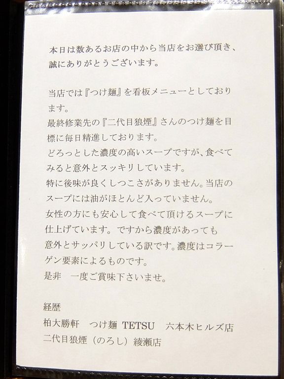 2ページ目、「つけ麺について」。