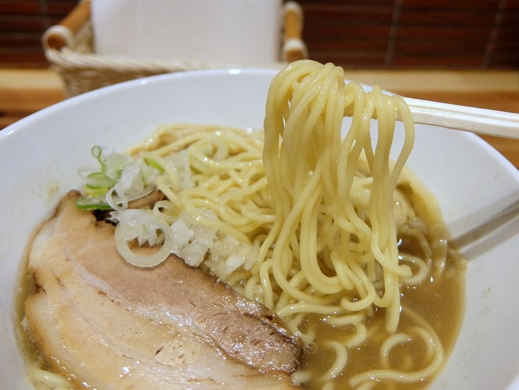 麺は中細ストレート。 低下水のパッツン系との事ですが、そこまえパツパツではなく、食べ易い適度な固さ。
