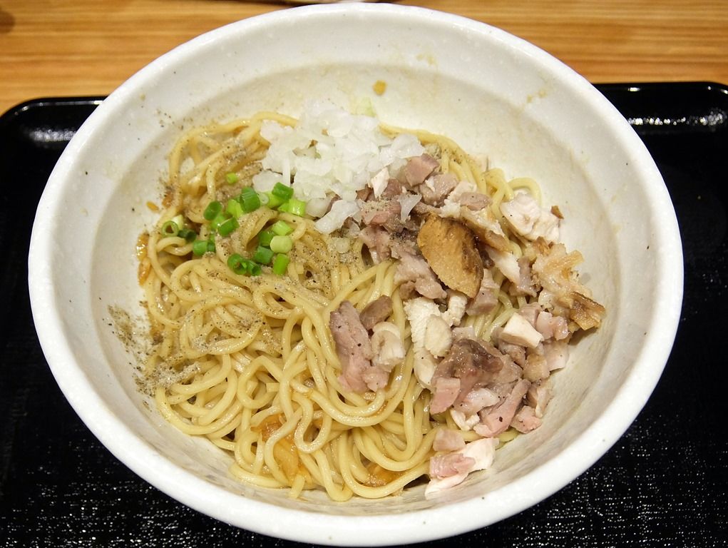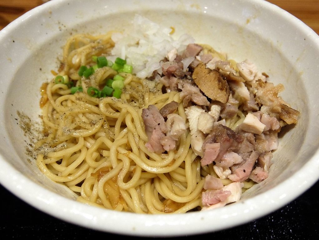 「煮干そば」の麺を食べ終えたら、「替玉」コール。こちらの替玉は油そば仕様で、いわゆる「和え玉」で提供されます。