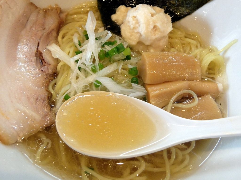 スープは、さらさらの清湯塩味。 着丼した瞬間に丼から、猛烈なホタテフレーバーが立ち上ります。