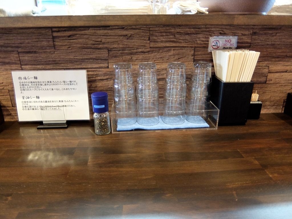 BGMはジャズ。箸は割り箸。 卓上調味料は、ミル入り粒黒胡椒。