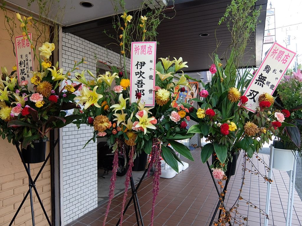 店頭にたくさんある開店祝い花を眺めながら、オープンを待ちます。
