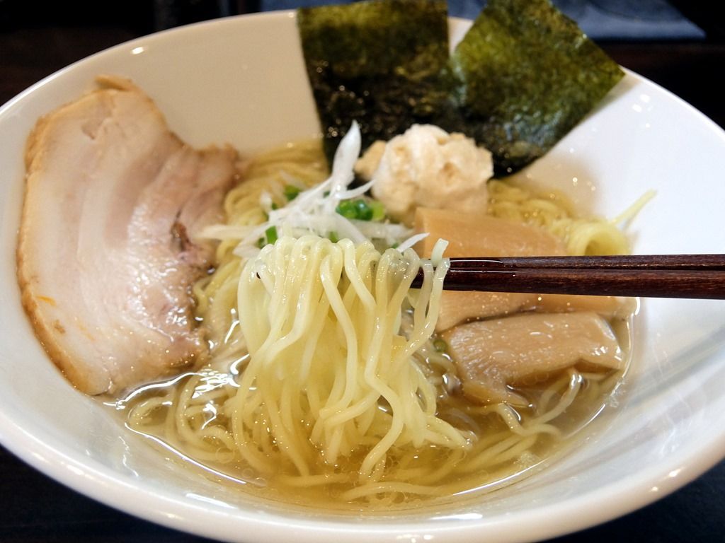 麺は三河屋製麺製で、軽く縮れのある中細タイプ。 三河屋の塩向けらしいソツのない麺ですが、激ウマのホタテオイルとスープが絡みまくって美味しい!