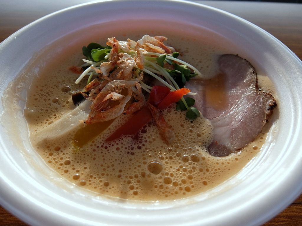 独特の製法で作られた超濃厚鶏スープをカプチーノ風にふわふわに泡立て、静岡の鮮度抜群な魚のアラを合わせたスープ。麺は自家製のモッチモチ太麺。レアチャーシュー、静岡野菜のピクルスを合わせ新ジャンルの次世代ラーメンここに完成!」』