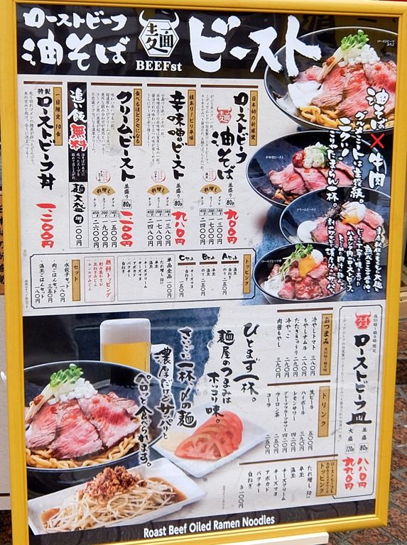 主なメニューは、 ローストビーフ油そば900円、