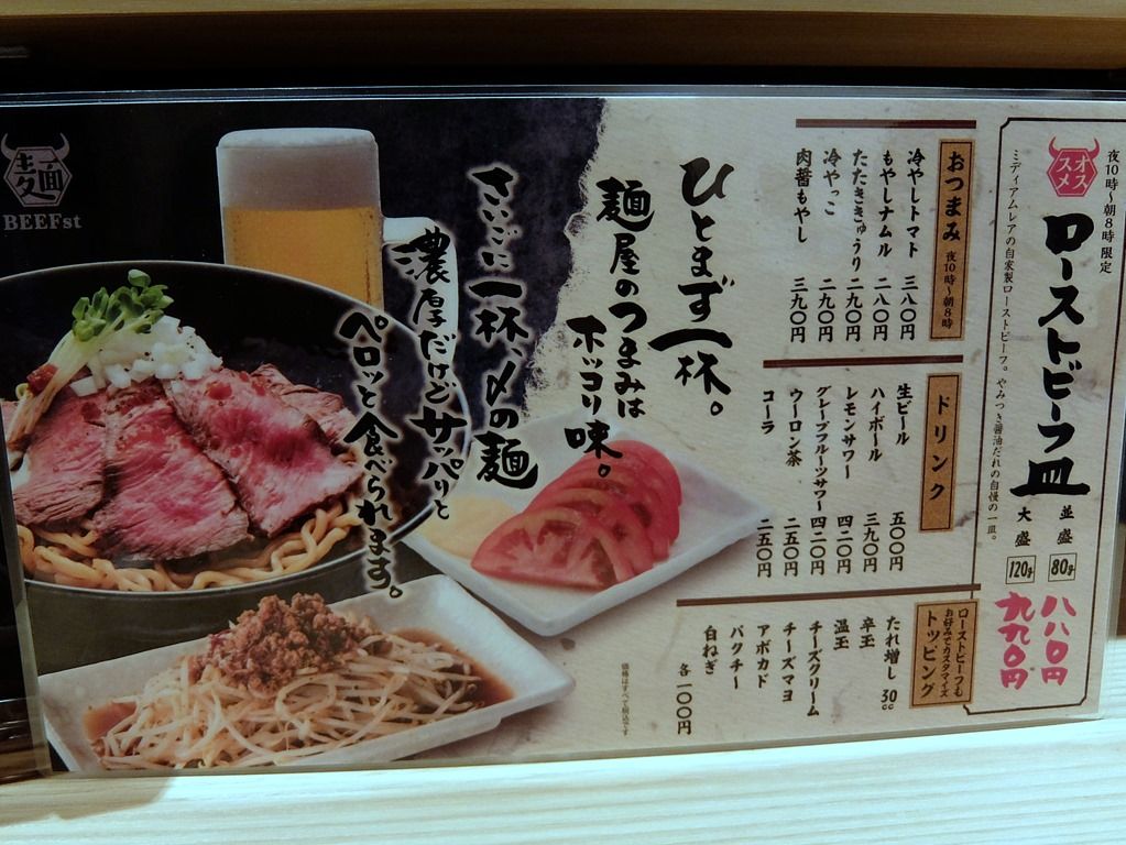 大阪王将、よってこや、太陽のトマト麺などを運営するイートアンドの新業態店。大手資本系ですが、「太陽のトマト麺」は結構旨いんですよね~!さらにローストビーフの魅力には勝てず、寄ってみることに(^_^;)