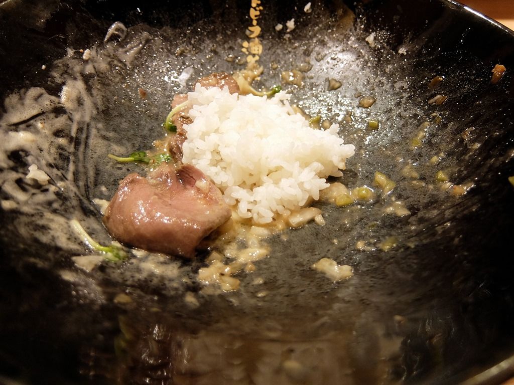 終盤、「追い飯」コール。 「追い飯」は、刺し身用小皿位の小さな皿に、ご飯がちょこっと提供されます。