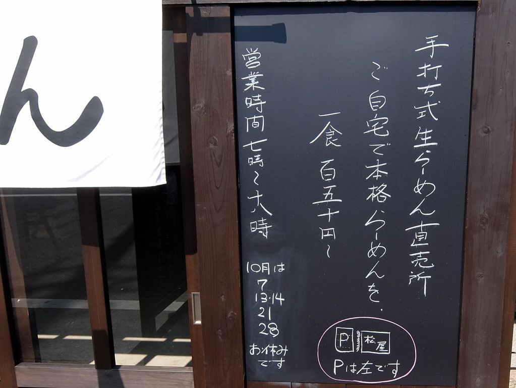営業時間は、7:00~18:00。ってことで、朝ラーが可能w 店舗に向かって入口が左右2つあり、右にらーめんの暖簾、左に製麺所の暖簾が掲げられてます。