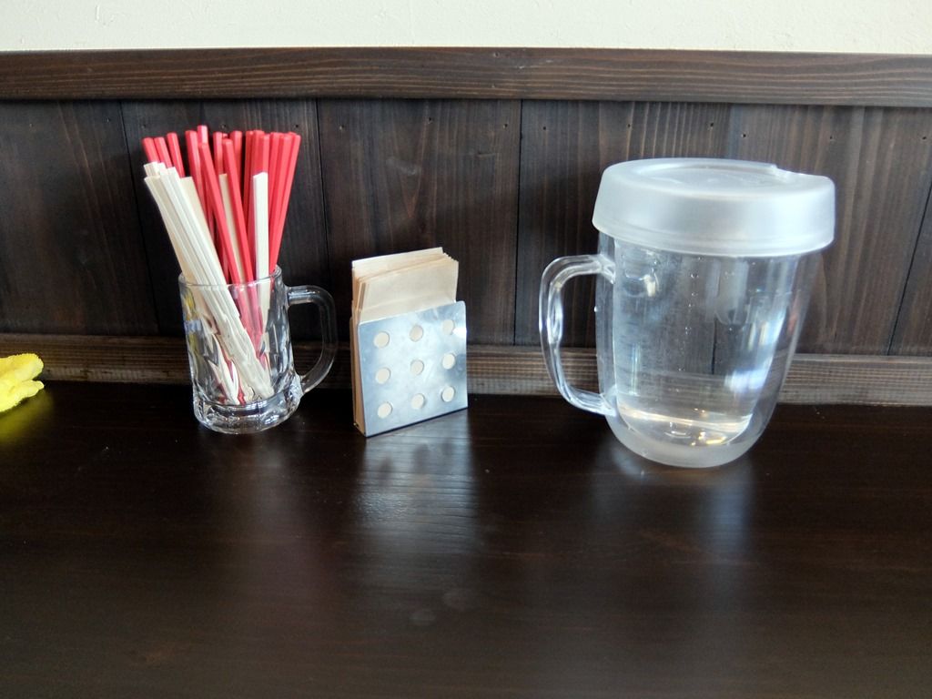 胡椒は席になく、受取り口横にあります
