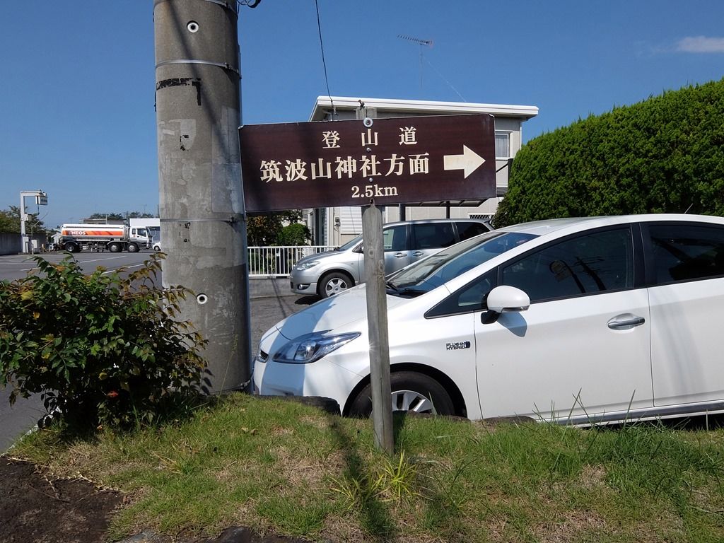 駐車場脇には、筑波山登山道2.5kmの看板。