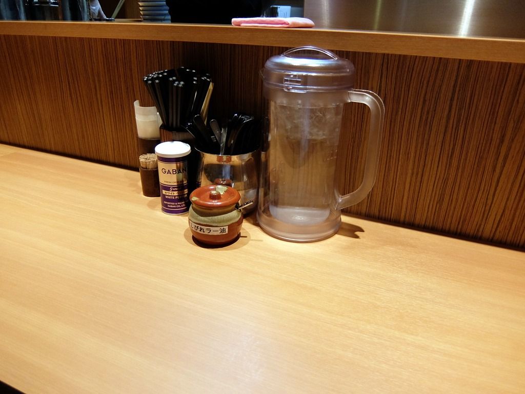 卓上調味料は、GABANホワイトペッパー、自家製らしい「しびれラー油」。
