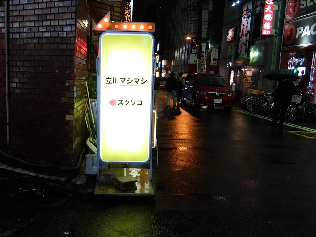 店の場所は、神田駅西口徒歩約1分。狭い路地裏でちょっと判りにくですが、「立川マシマシ スグソコ」の黄色い電飾看板が目印。