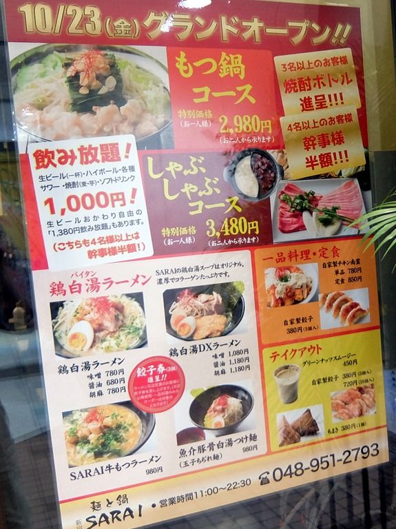 2015年10月24日、草加の新店「麺と鍋 新宿SARAI」へ。