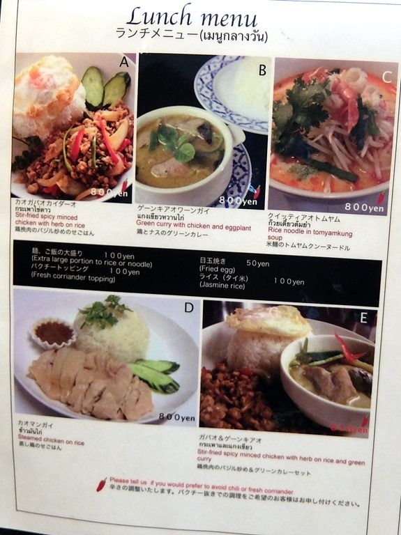 ランチメニューは、 カオガパオカイダーオ(鶏挽肉とバジルの炒めのせごはん)800円、