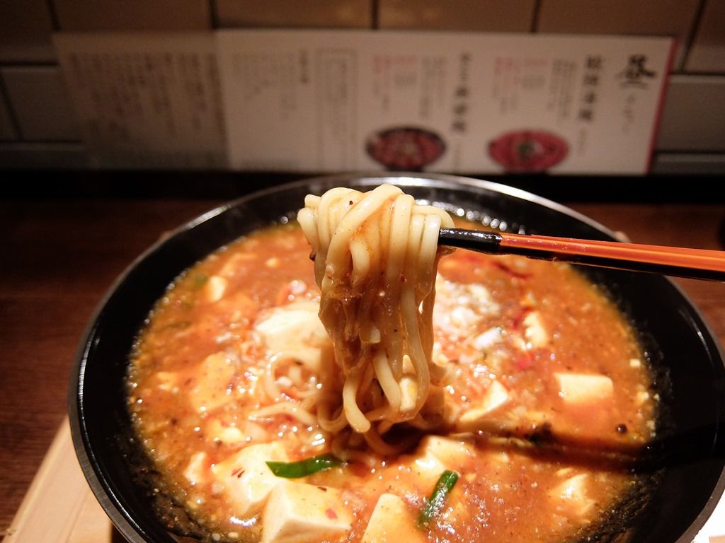 麺は、中太ストレート。 もちもちっとした食感が楽しい麺で、麻婆に実によく合ってるんですよねー!美味しい!