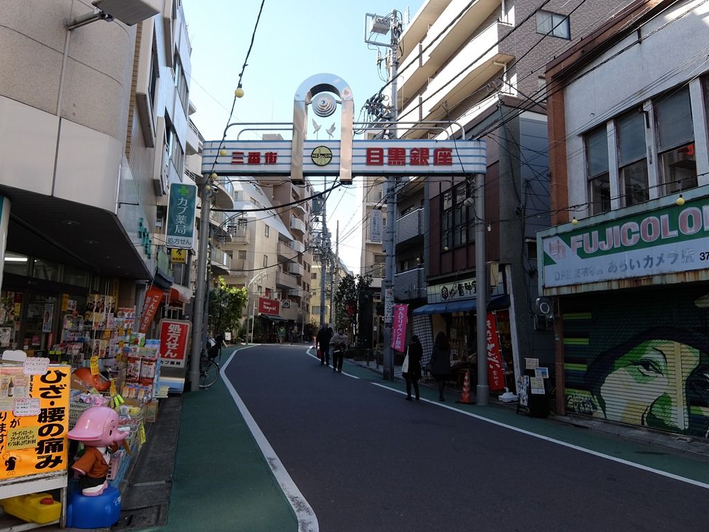 店の場所は、中目黒駅徒歩約5分。目黒銀座二番街と三番街のアーケードの間。 定刻20分前に到着、一番海苔~w