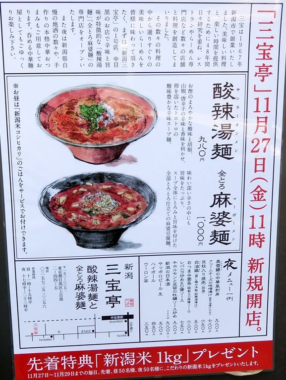 2015年11月27日オープン。新潟をメインに、東北各県・長野県・愛知県等に支店展開する三宝亭グループの東京初?進出店。グループのメインブランド「中華麺食堂 三宝亭」は、昨年8月に関東1号店としてさいたま市に与野本町店をオープン。