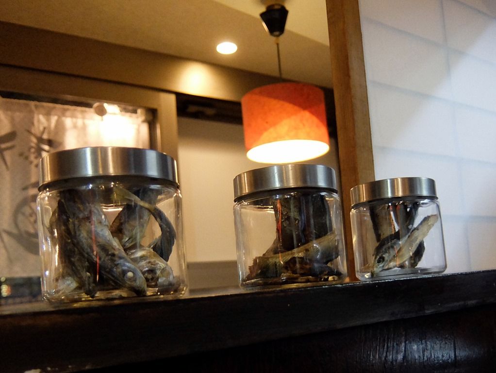 カウンター端にも、びん詰の煮干しw