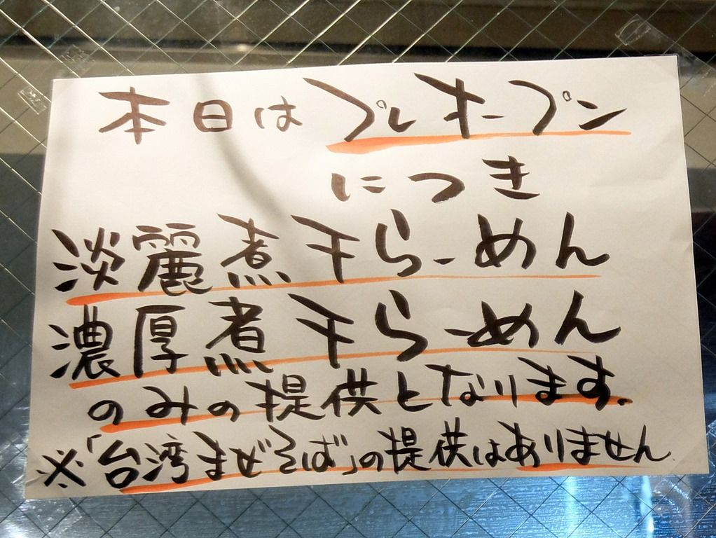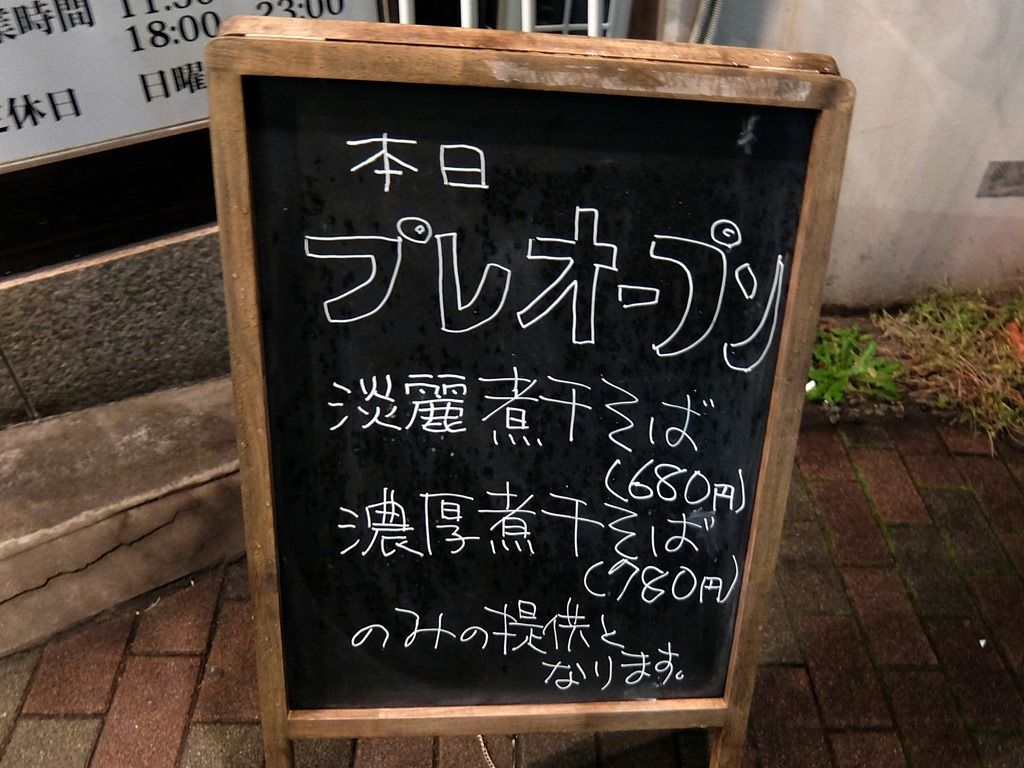 プレオープン中は、淡麗と濃厚の煮干らーめんのみの提供。