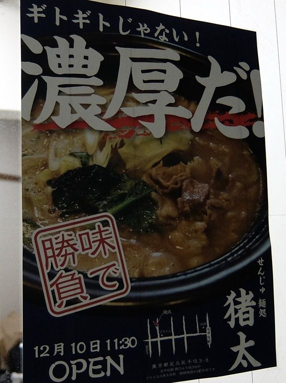 2015年12月11日、本日オープンの新店「せんじゅ 麺処 猪太」へ。