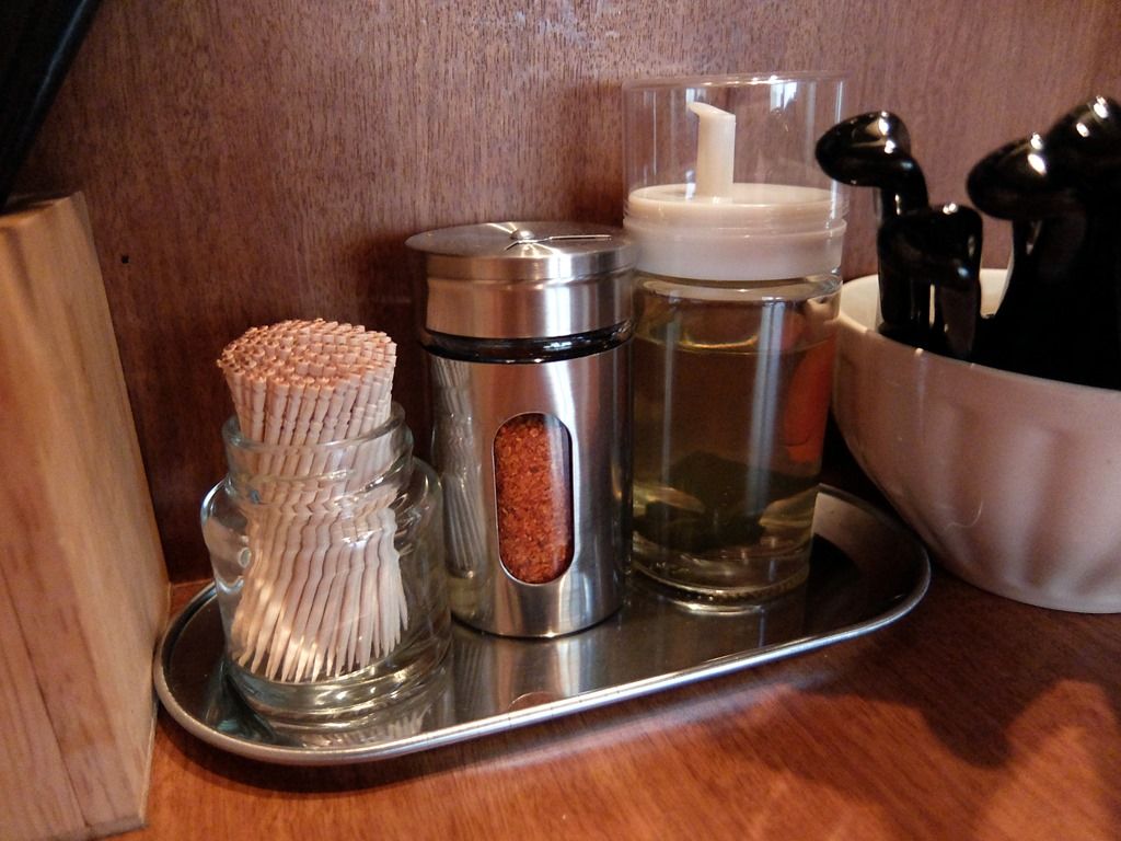 BGMはモダンジャズ的な。箸は洗い箸でエコ対応。