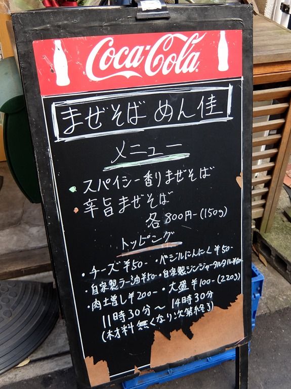 店頭「まぜそば めん佳」のスタンド看板が目印で、よく目立ちます。