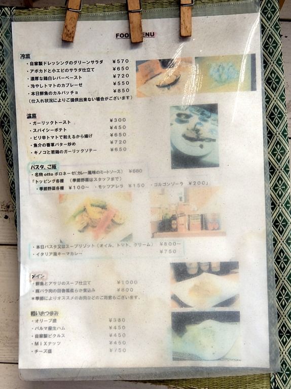 店頭掲示のFOOD MENUは、夜のイタリアバーのメニュー。